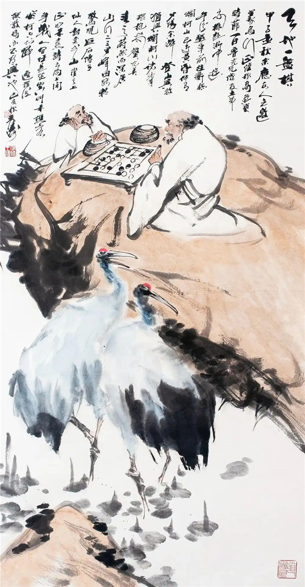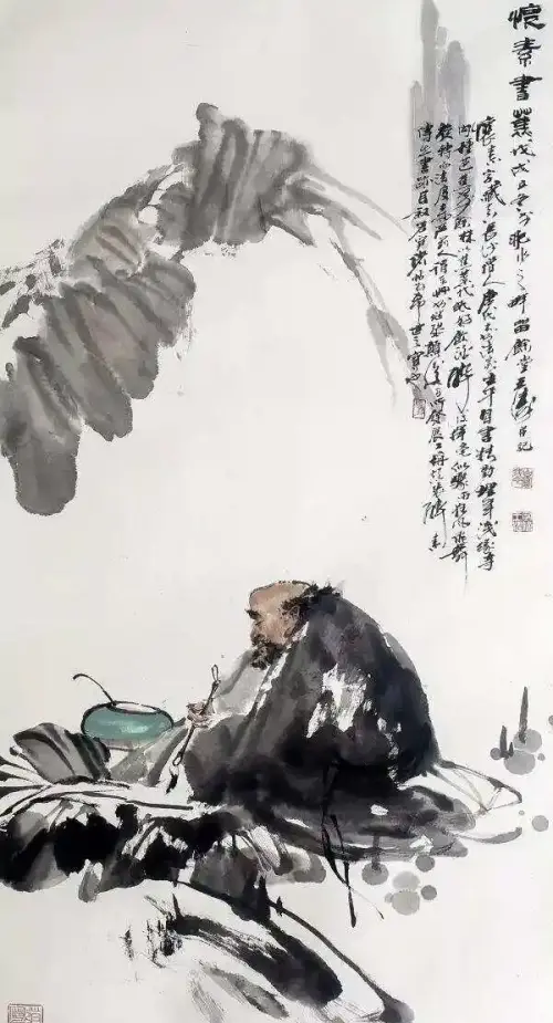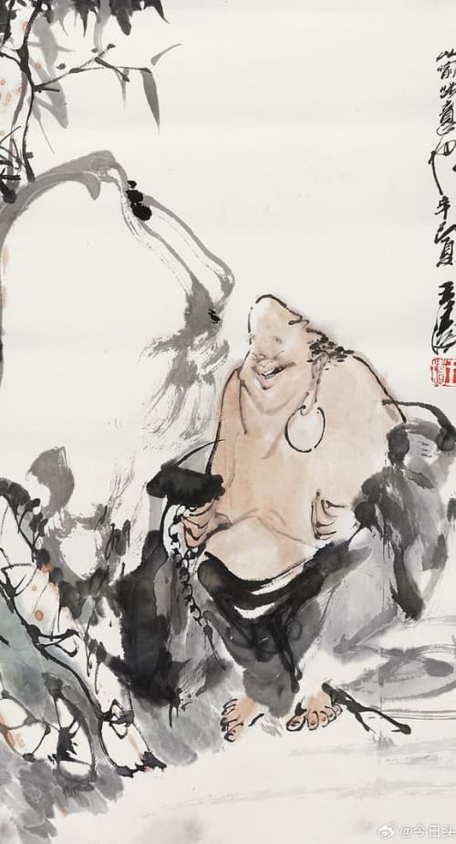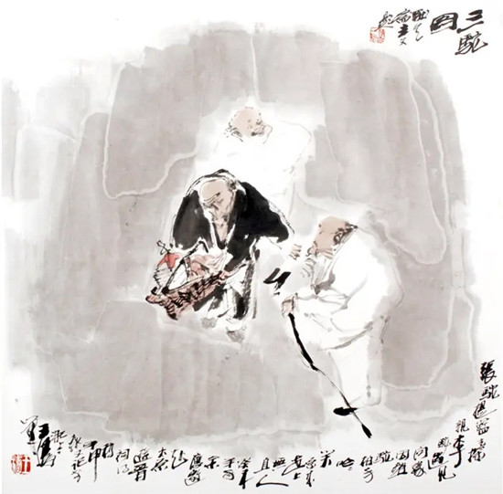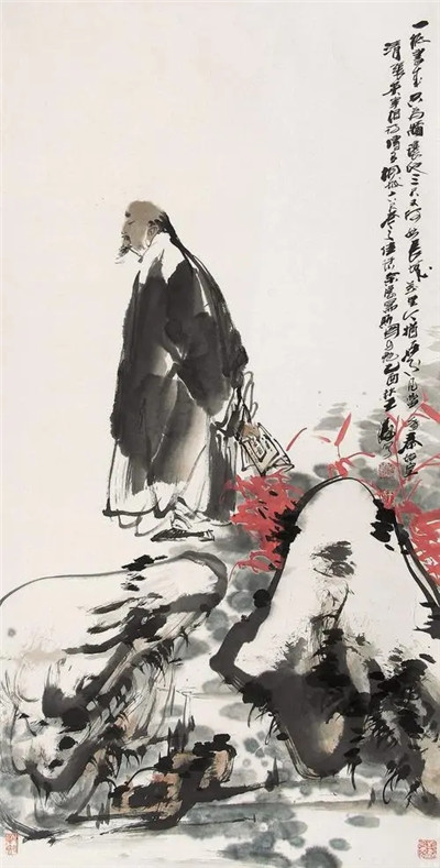 20世纪中国人物画家的主体大多出身于正规的美术学院,传统笔墨与写实主义的融合是他们建构画面的基本语言。如今,我们把这支庞大的学院派体系称之为“徐蒋体系”,他们在特殊的时代背景下,以写实的手法表现革命历史和社会主义建设等现实主义题材,由于这样的表现方式大多通过“以形写神”来表现人物的精神气质,导致很多画家沉迷于“像与不像”的造型结构,从而过多依赖西方素描的表现方式,特别是涉及描绘国家领袖、革命先烈以及英雄人物的题材时,往往会被“形”的因素束缚,甚至使得很多画家走上了以水墨画素描的路径。后来,“新浙派”人物画以潘天寿“中西绘画应该拉开距离”的理论思想为指导,将中国优秀的传统笔墨与西方以线为主的结构素描有机结合,尤其是把大写意花鸟绘画的笔墨语言融合到人物画创作之中,从而为中国人物绘画的语言面貌平添了新的气象。