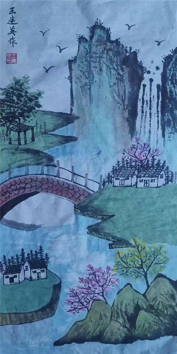 观王建英的画作,如读一卷清润的宋诗。她的笔墨语言兼具传统的法度与现代的审美,山水的雄浑与花鸟的雅致形成奇妙的平衡,尤其在色彩的运用上,既有水墨的含蓄,又有重彩的明快,展现了新一代国画家对传统美学的创造性转化。