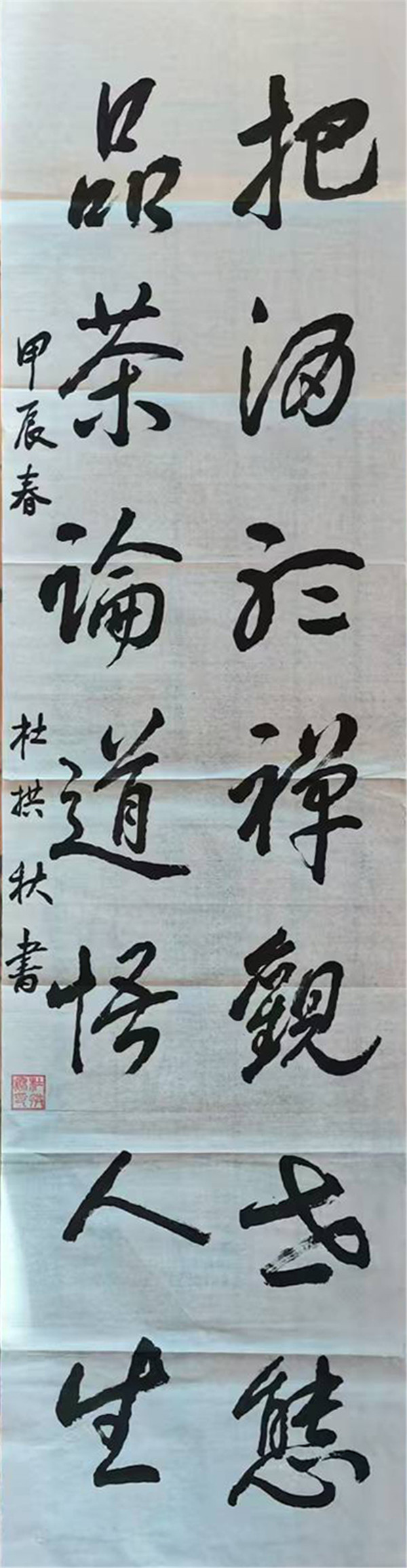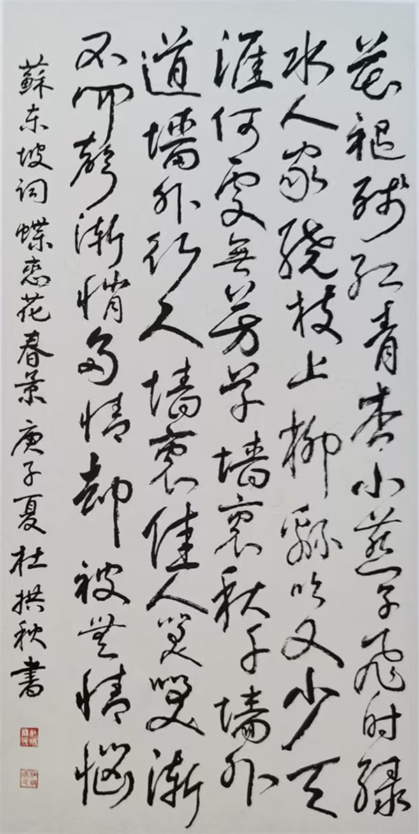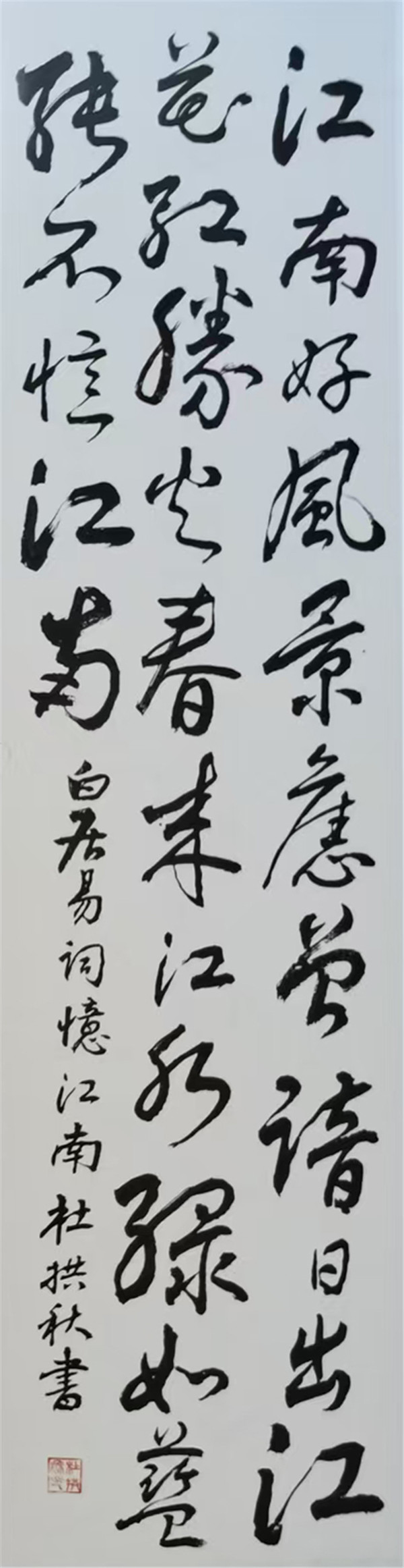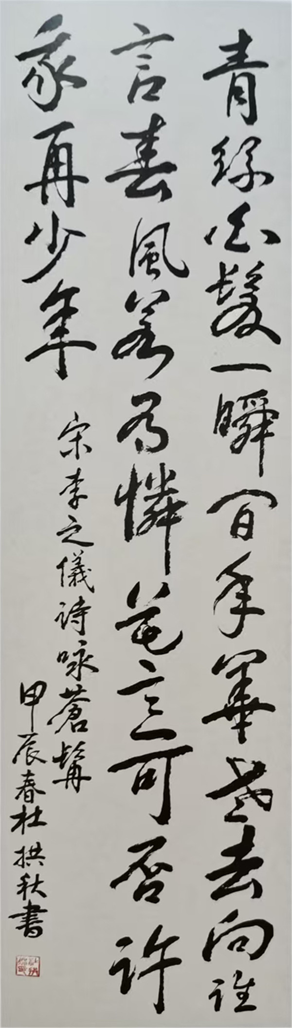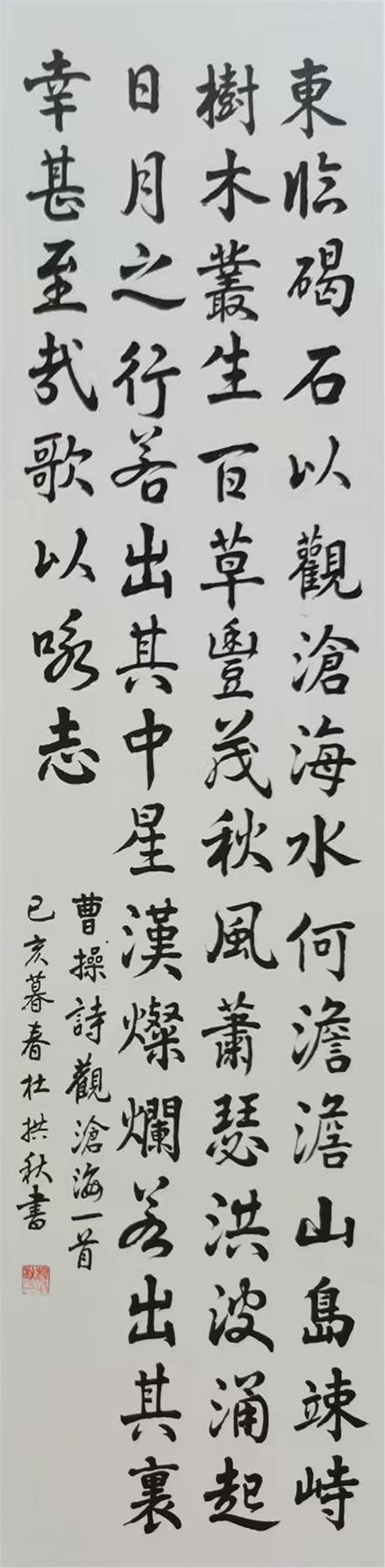 杜拱秋先生以工科背景而入书道,其作品兼具理性之精准与感性之灵动,线条如精密仪器般考究,气息却如林下之风般悠然,在当代老年书法家中独树一帜。