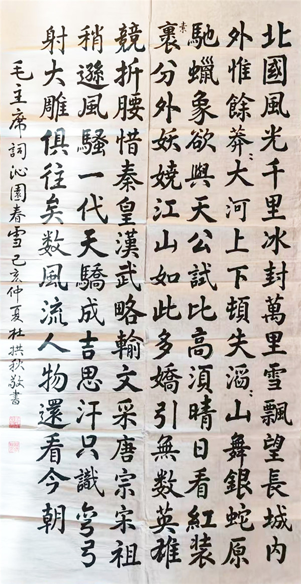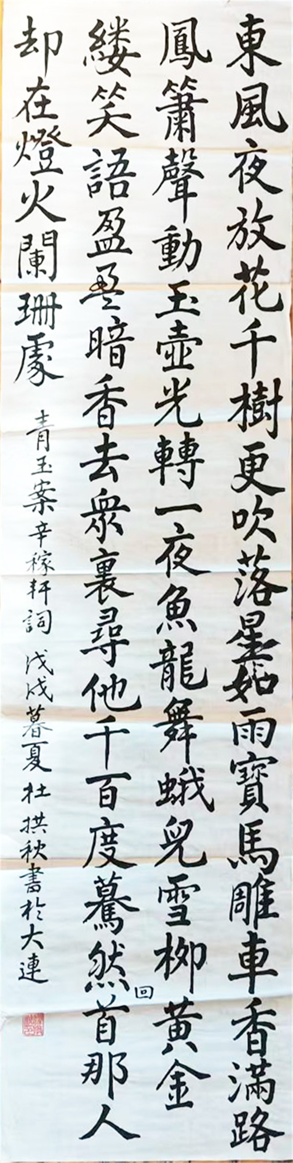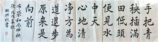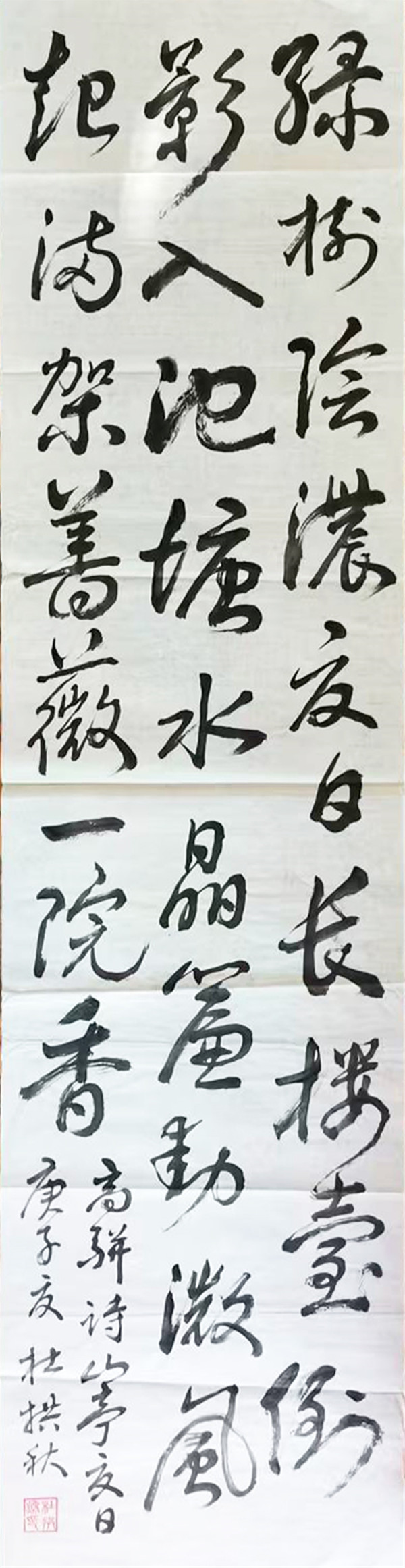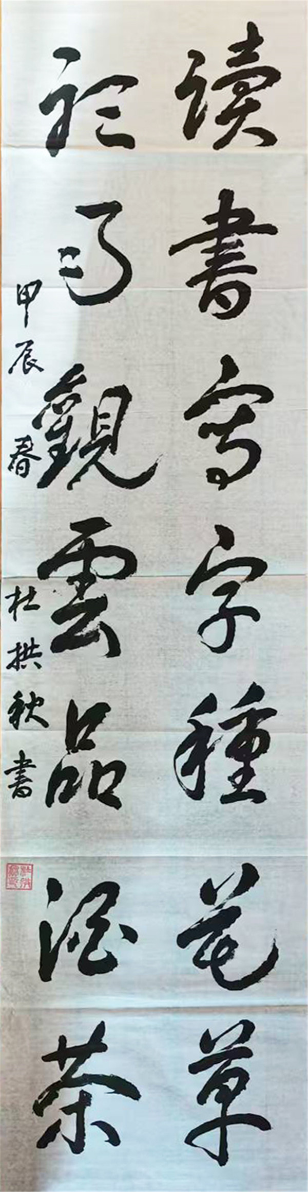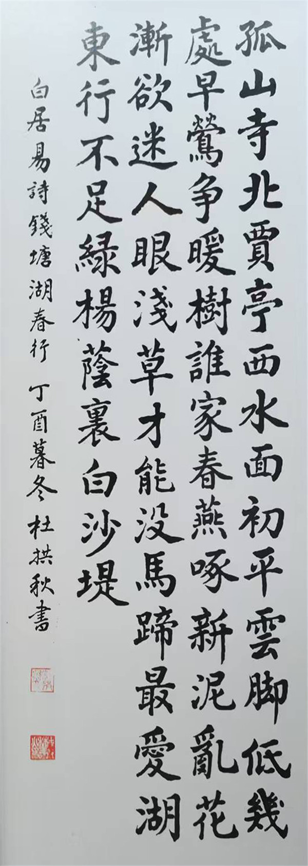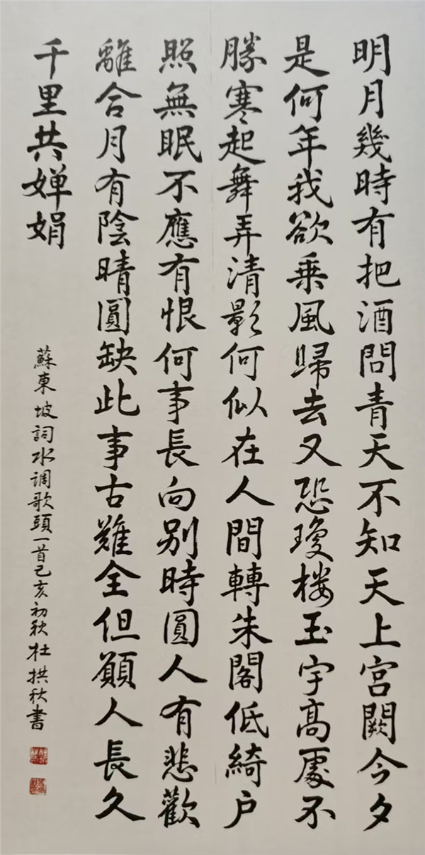 杜拱秋先生以工科背景而入书道,其作品兼具理性之精准与感性之灵动,线条如精密仪器般考究,气息却如林下之风般悠然,在当代老年书法家中独树一帜。