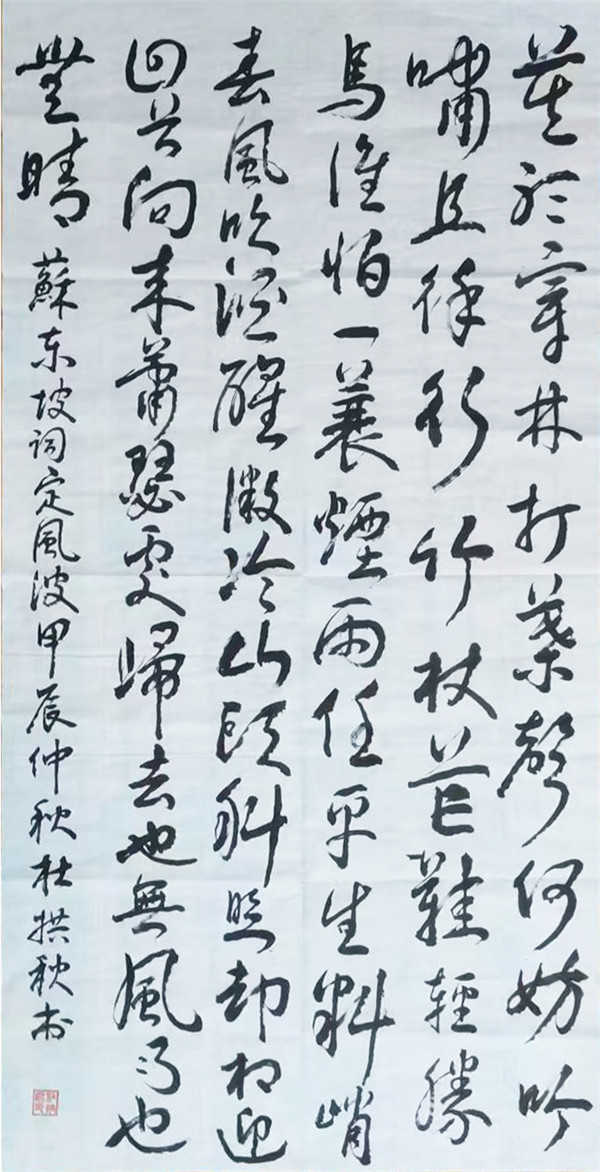 先生书东坡词《定风波》,笔墨间深得东坡 “也无风雨也无晴” 的旷达意趣,以笔为心,以墨为情,真正做到了 “诗为心画,书为心迹”。