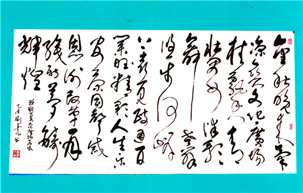 刘善元先生的书法,于草隶二体最见功力。其草书以颠素为基,又融入当代审美意趣,线条奔放而不失理性;隶书则在汉碑浑朴中透出灵秀,是碑帖融合的成功实践。他的作品证明,传统书法的生命力,正在于当代书家的创造性转化。