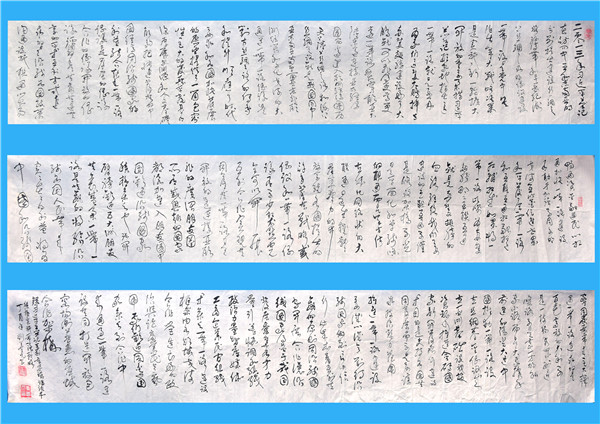 善元先生的字,有 “情” 有 “骨”。观其狂草长卷,如读李白歌行,笔势起落间皆是性情流露;而隶书作品又具庙堂气象,静穆中见风骨。这种 “动若脱兔,静若处子” 的笔墨语言,恰是中国艺术 “刚柔并济” 精神的当代诠释。