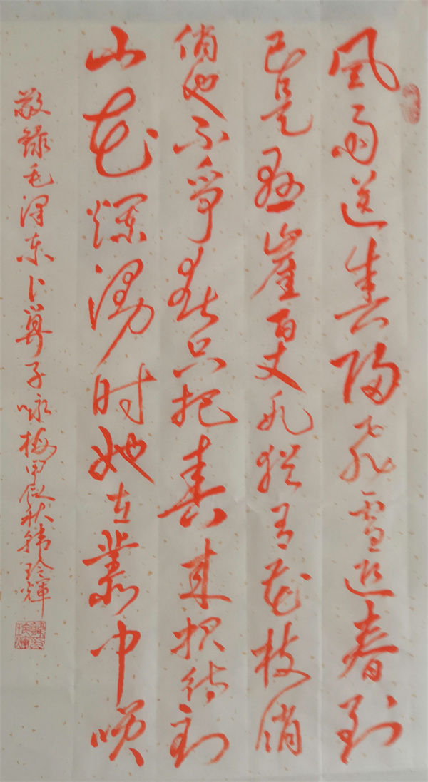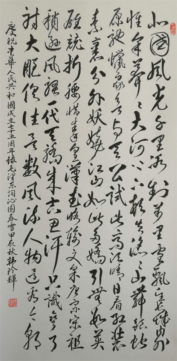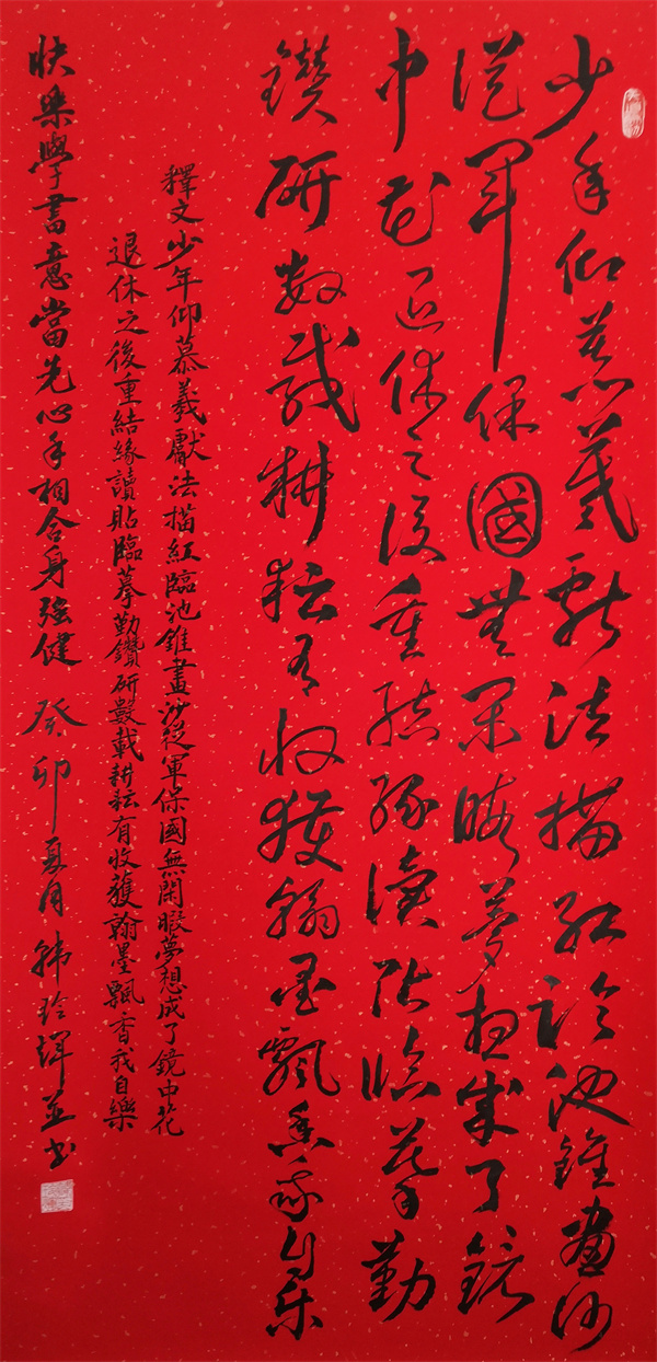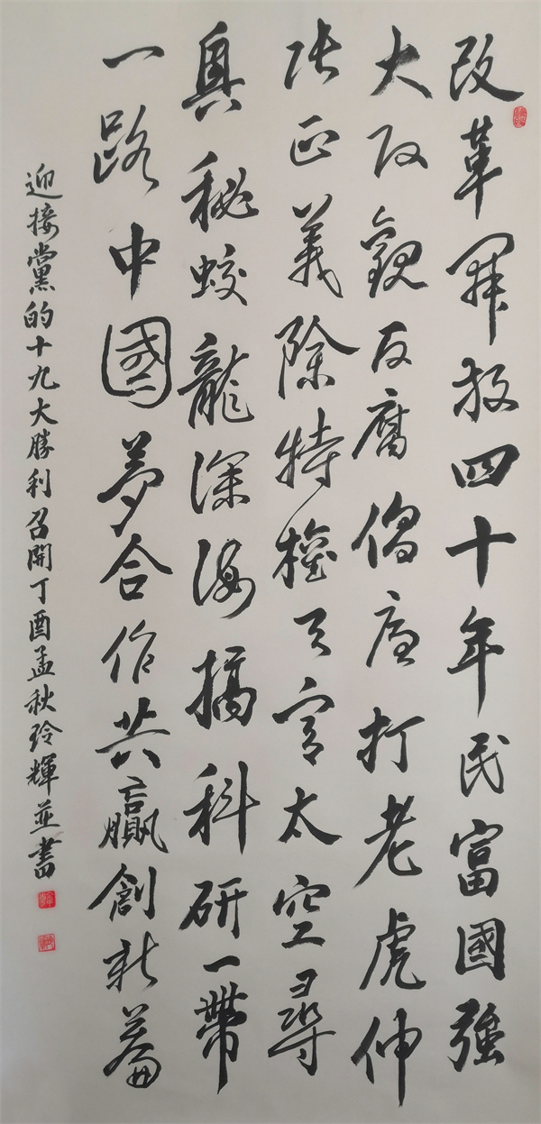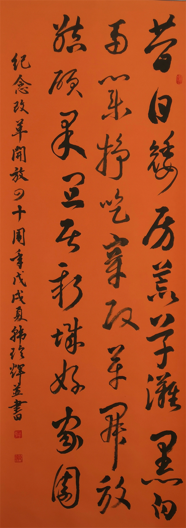 韩玲辉先生的书法,兼具北碑的雄强与南帖的流美,尤其在红色主题作品中,将家国情怀融入笔墨章法,是当代书坛 “以书弘道” 的有益尝试。