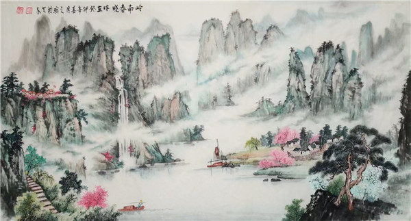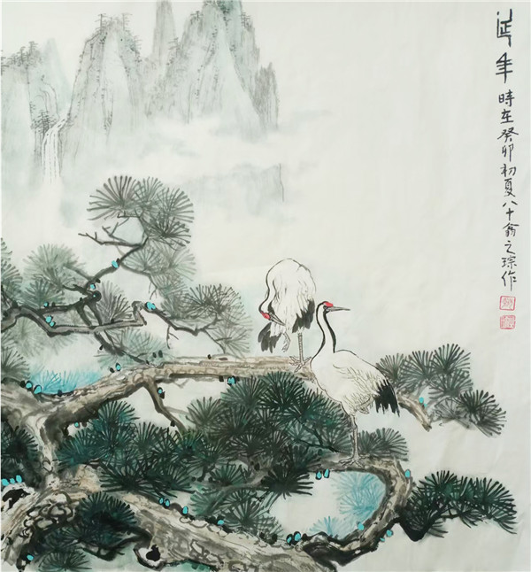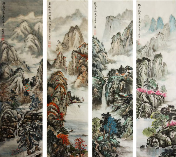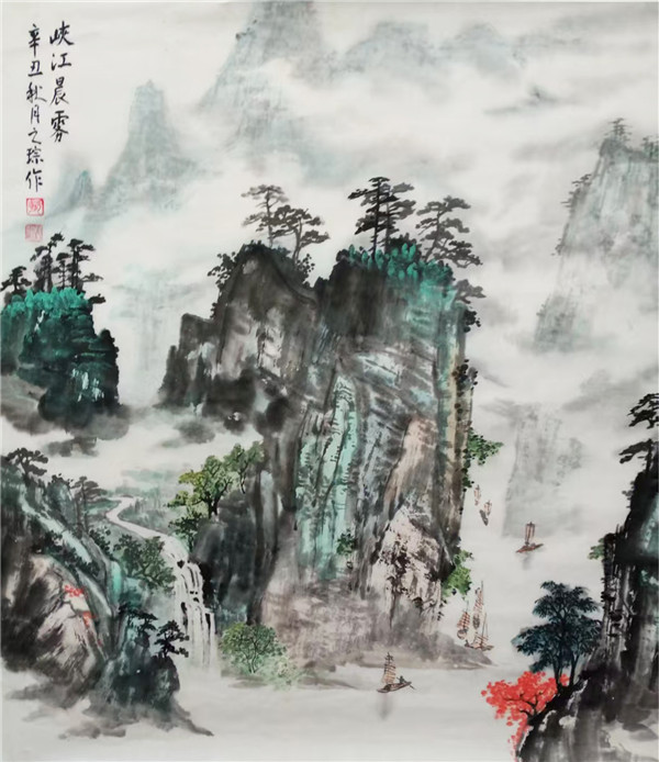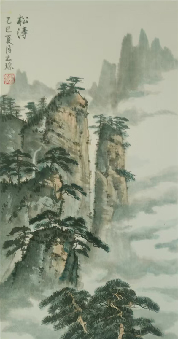 石涛云:“笔墨当随时代。” 赵之琮先生的创作始终践行此道。从《四季山水四条屏》的四时更迭,到《峡江晨雾》的云蒸霞蔚,再到《松鹤延年》的生机盎然,他以皴擦点染勾勒山河肌理,用浓淡干湿晕染天地气象。笔下的峰峦叠嶂、飞瀑流泉,既是对故乡陇南的深情回望,亦是对中国传统山水画 “天人合一” 精神的当代诠释。